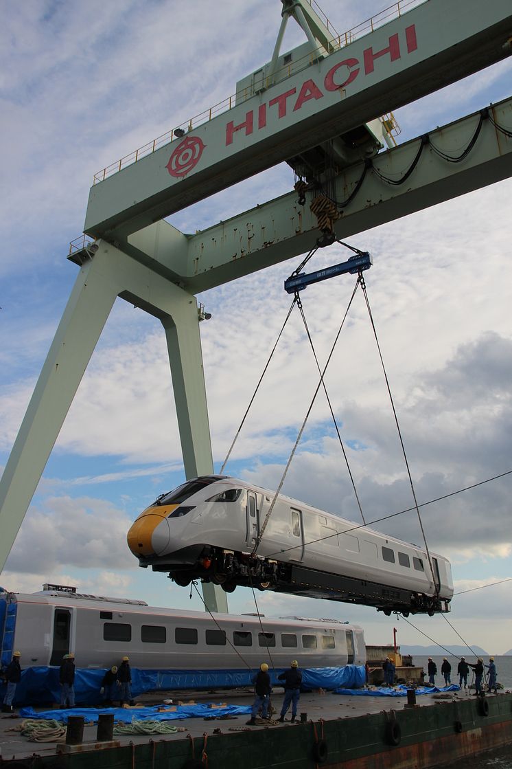 The train is the first pre-series train for the UK's Intercity Express Programme. It has been manufactured in Hitachi Rail's Kasado factory (Japan) and was shipped from there on 7th January 2015. The train is set to arrive in the UK in March 2015 for subsequent testing.