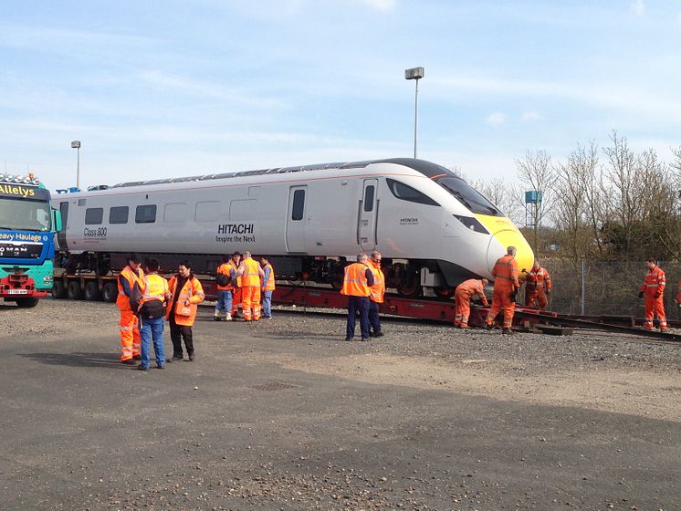 The first of the Class 800 trains arrives at RIDC at Asfordby